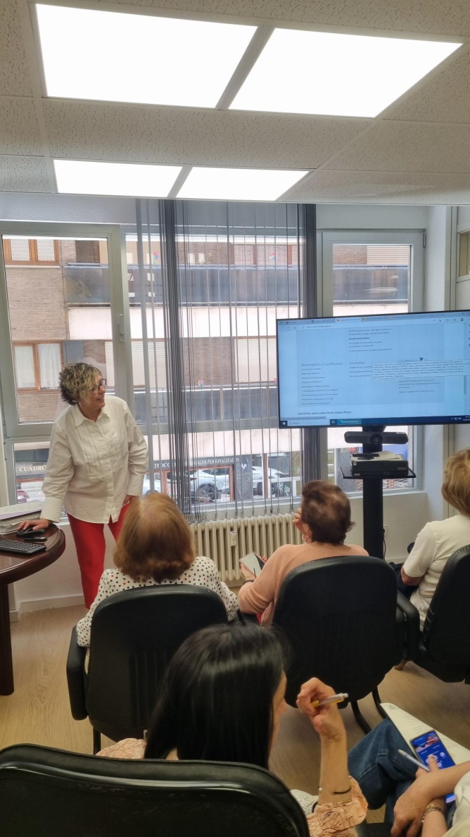 Finalmente, en Palencia (sobre estas líneas) se ha realizado un taller práctico presencial sobre el funcionamiento de la App móvil y la sede electrónica de la Mutualidad, al que han asistido un total de 20 personas mutualistas en las dos sesiones celebradas. La directora provincial, Domi de la Fuente (foto inferior), ha calificado la experiencia de “muy gratificante, con un público entregado y colaborador, de esas personas que te hacen sentir útil y que dan sentido a mi trabajo”. Unas palabras que coinciden con el sentir general del resto de las directoras provinciales y del personal empleado que ha participado voluntariamente esta nueva edición de la Semana de la Administración Abierta.