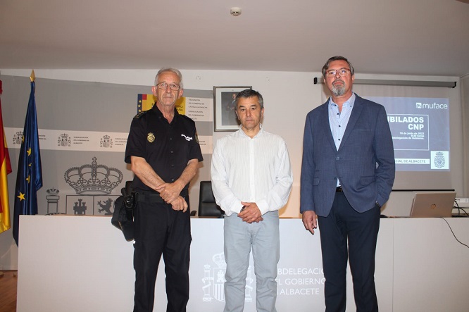 La subdelegación del Gobierno en Albacete acogió el pasado viernes una charla informativa por parte de los responsables del Servicio Provincial de MUFACE en la capital manchega dirigida a personal funcionario del Cuerpo Nacional de Policía que ha pasado a situación de jubilación. El acto, al que acudieron unas 40 personas, estuvo presentado por el subdelegado del Gobierno, Miguel Juan Espinosa, junto con el Comisario Jefe de Albacete, Antonio Bueno y el director provincial de MUFACE, Javier Lorenzo.