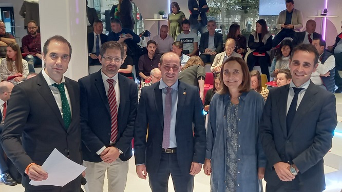 En el acto participaron, entre otros, el presidente del Colegio de Graduados Sociales, Marcos Óscar Martínez, y el director general de Seguridad y Estrategia Digital del Principado de Asturias, Javier Fernández, que expuso los últimos avances en materia de administración electrónica. También participó la decana de la Facultad de Economía y Empresa de la Universidad de Oviedo, Carmen Benavides y otros ponentes que expusieron distintas estrategias de digitalización de los despachos en su ámbito interno y en sus relaciones con sus clientes y con las Administraciones Públicas. (En la imagen, de izquierda a derecha, Borja Macía, gerente de Nea Master; Angel Colmeiro, Marcos Óscar Martínez, Carmen Benavides y Javier Fernández)